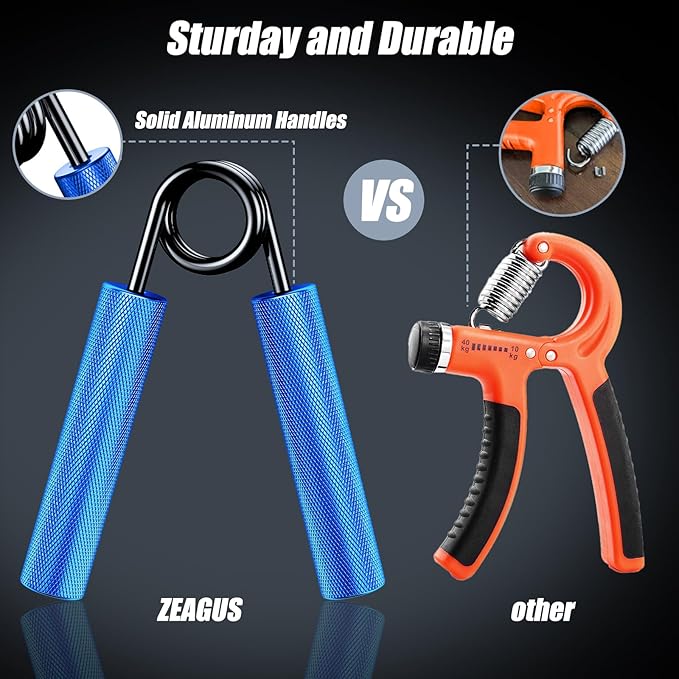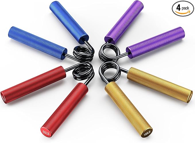 - Grip Strength Trainer Set: The ZEAGUS Metal Hand Grip Trainer contains 4 different resistance levels from 50-200LB. Grip trainer is suitable for everyone such as athletes, sports, fitness trainers, fitness, musicians and people who want to exercise their hands, wrists and fingers.