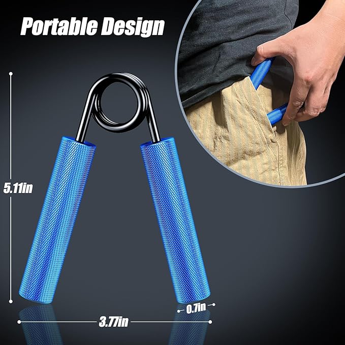 - FITS ALL HAND SIZES AND PORTABLE DESIGN: The grip is very portable and can easily be carried in your bag or pocket. You can take these hand grippers anywhere you want to exercise.Use them at home, in the office or while traveling to turn your downtime into productive workout time.Whether you are male or female, young or old, a beginner or an experienced athlete, you can start grip strength training anytime, anywhere. Suitable for all people and all hand sizes.