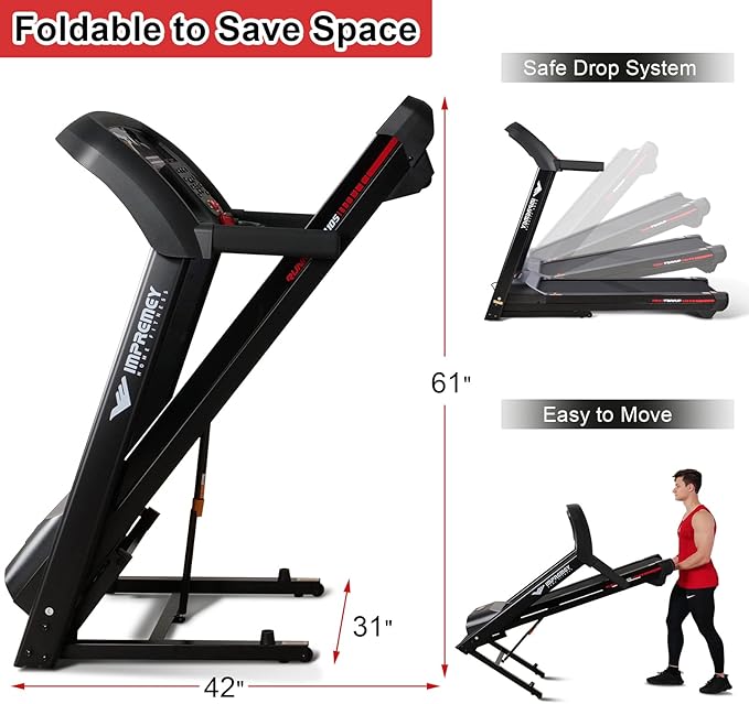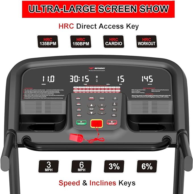 - 【Latest Innovative HRC Technolgy and Heart rate monitor armband included】Imptech HRC (Heart Rate Control) workout system helps you achieve the better running result by maintaining you in proper heart rate. It is smart to adjust speed automatically for optimized HRC workout that meets your goals (such as fat burn, cardio training, and increase performance training). And it is easy to operate HRC workout by direct access key without entering complicated user information.