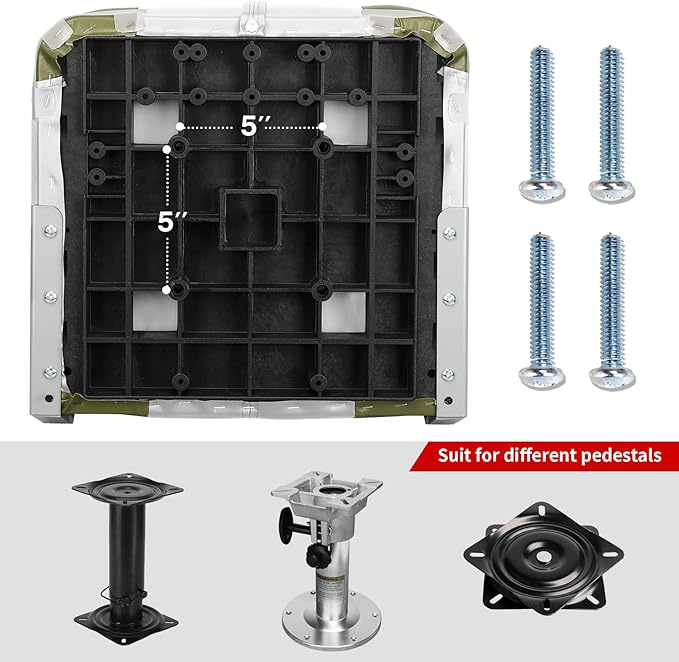 - Easy to install on any standard 4-bolt swivel or pedestal, 4 stainless steel mounting screws included.