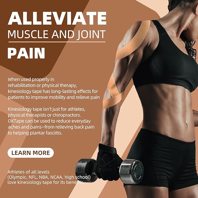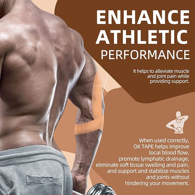 - DURABLE: OK TAPE Kinesiology Tape is coated with a strongly Pro-level adhesive; It adapts optimally to movements and is resistant to water and sweat for up to 5 days; Wear our tapes without the fear of premature peeling; Cost effective for long-time use