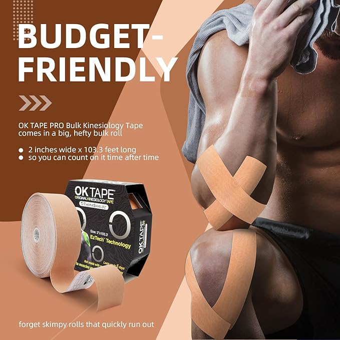 OK TAPE Kinesiology Tape Bulk 103Feet, Pro Adhesive, Water-Resistant k Tape, Elastic Athletic Tape, Latex Free, Uncut, Beige