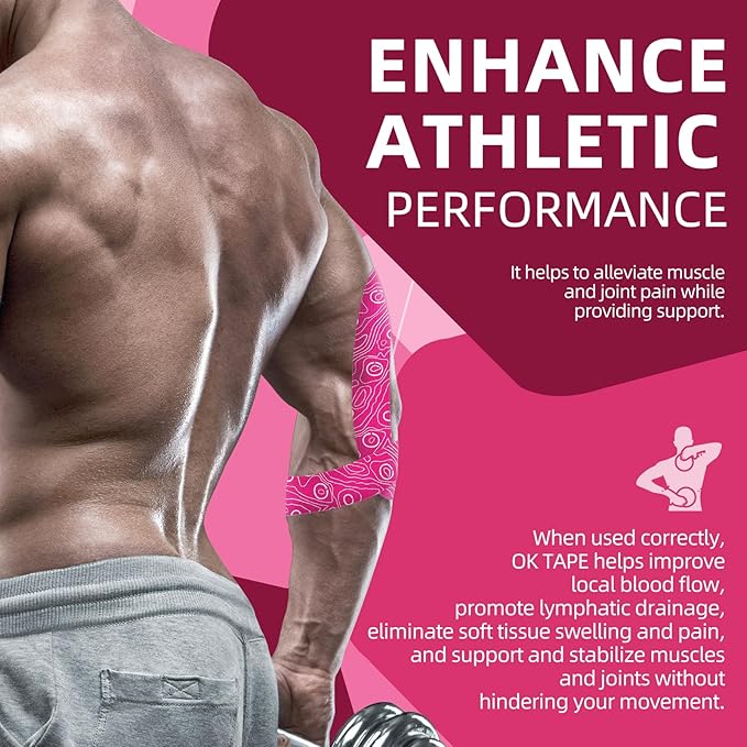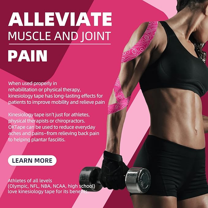 - DURABLE: OK TAPE Kinesiology Tape is coated with a strongly Pro-level adhesive; It adapts optimally to movements and is resistant to water and sweat for up to 5 days; Wear our tapes without the fear of premature peeling; Cost effective for long-time use