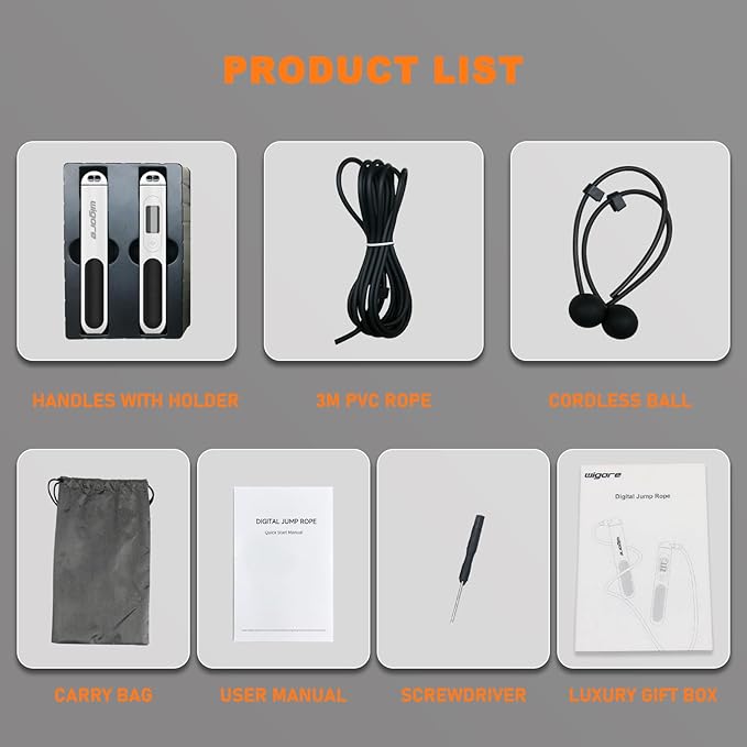 - 【LED HD Display & Ergonomic Handles】: Wigore jump rope are unique design for fitness are equipped with Ergonomic Handles that is made from friendly environmental ABS and non-polluting silicone material. ergonomic silica gel non-slip grip. Non-slip, non-toxic, and tasteless for safe use. The comfortable hand grip reduces fatigue and makes exerting force easie,Also,the main handle is embedded with a backlit LCD display that provides users a clear view of your workout