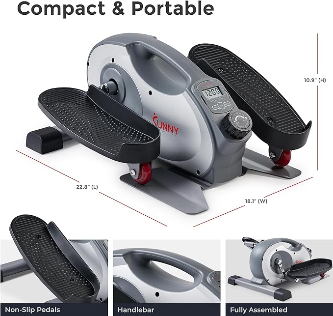 - 【COMPACT DESIGN】Effortlessly integrate fitness into your daily routine with our low-profile elliptical, designed to comfortably fit under most desks, providing the flexibility to exercise in diverse environments.