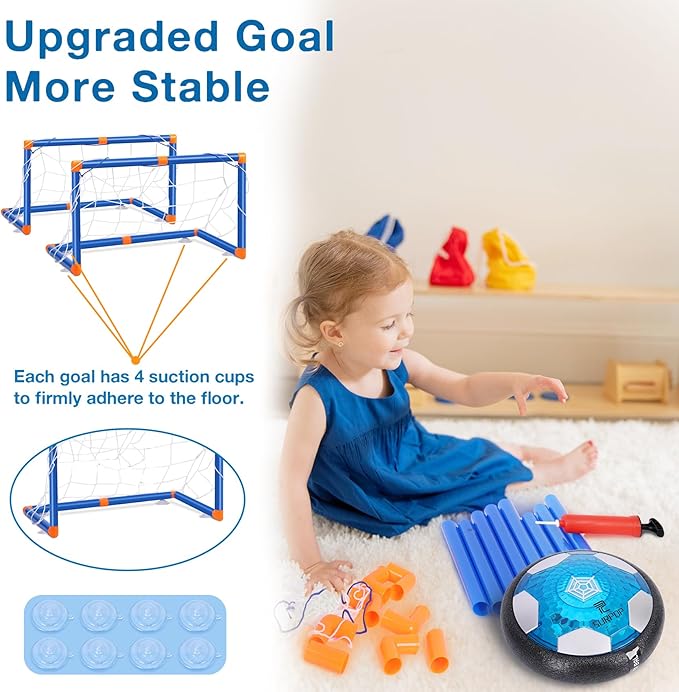 - Ideal Gift: Looking for a great gift for a birthday or holiday? The hover soccer ball is an excellent choice. It includes an LED hoverball, an inflatable football, a USB rechargeable cable, two goals, and a pump. This complete set is the perfect present for kids, bringing them endless joy and entertainment.