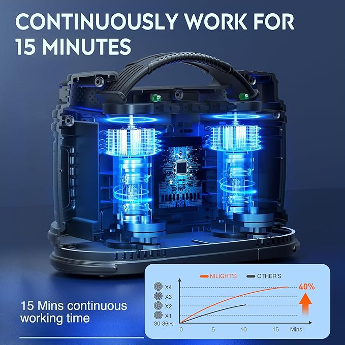 Nilight Tire Inflator Portable Air Compressor Dual Power Car 12V DC Home 110V AC Pump w/Analog Pressure Gauge Fast Inflate Auto Shutoff for Cars SUV Motorcycle Bicycle