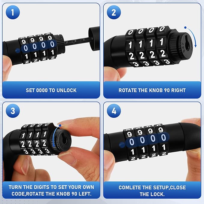 - Hassle-free Security: Enjoy the convenience of a combination bike lock with a keyless design, allowing for quick and easy locking and unlocking without the worry of losing any keys