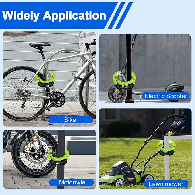 - SECURE & RESETTABLE: 5-digit resettable combination bike chain lock, much safer than other 4 digit locks. Easy to set your own personalized number combination.