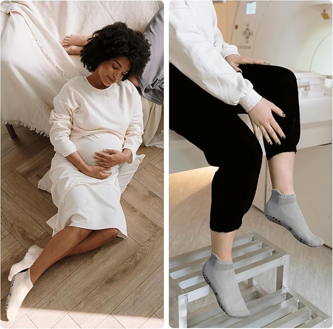 - 【HOLD YOUR POSE WITH EASE】These stylish and casual non slip yoga socks will provide you with all the grips you need for your routine on home, gym, studio and so on. But they are also ideal as hospital socks, perfect for physiotherapy, elderly care, pregnancy and more to prevent falls from stairs , or the floor.
