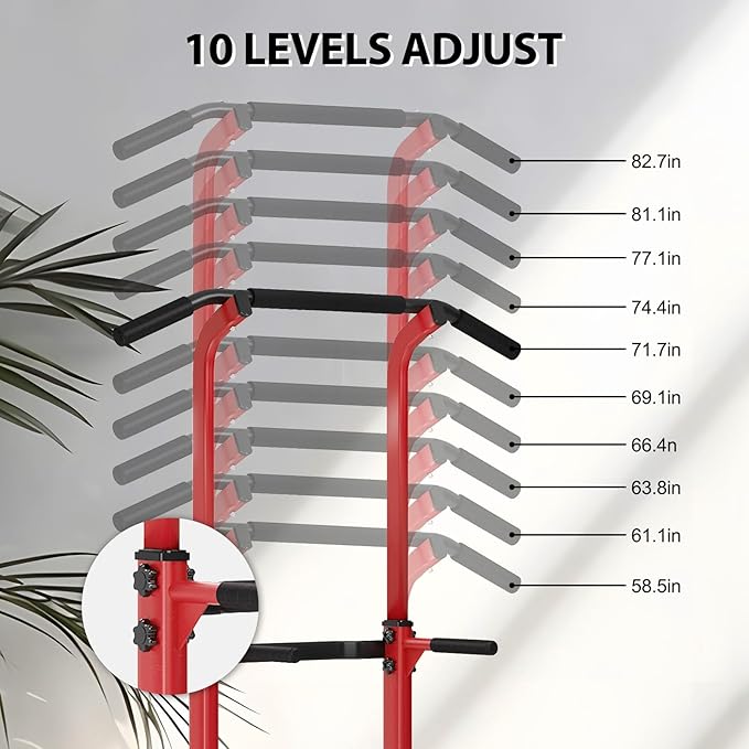 - 💪【Adjustable Height】Multi gear regulation, and the adjustable height ranges in 65"~82.7", you can adjust the height to fit your needs during workout.