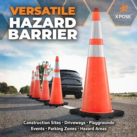 - HEAVY DUTY: Xpose Safety plastic orange traffic safety cones are sturdy so you can rely on them not to fall over. Create a barrier or designate an area with the help of these brightly colored orange cones. Our weighted cones stay up right without falling.