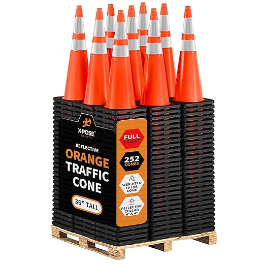 Xpose Safety 36 Inch Orange Traffic Cones with 6" & 4" Collars - Bulk Full Pallet 252-Pack - Multipurpose PVC Plastic Safety Cone for Parking, Soccer, Caution, Kids and Construction - DOT Approved