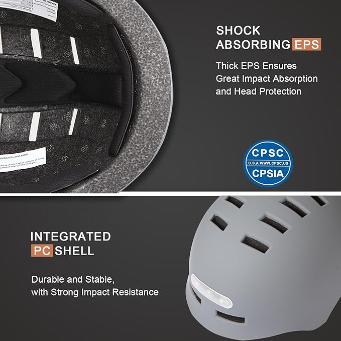 - 【Safty Protection】:GTSBROS bike helmet with lights has passed CE and CPSC certification. The one-piece structure combines EPS foam and high-density PC shells to ensure better shock absorption and provide safer protection. The bike helmet adult is protective and ideal for urban commuting, cycling,scooter riding, skateboarding; also suitable for city, road, electric, trek bike and etc