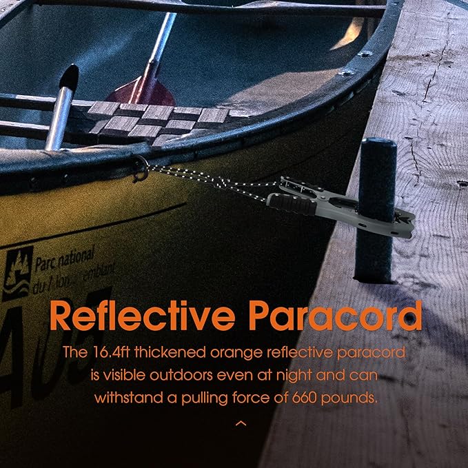 - - Super Tight: When your vessel pulls away it forces the paracord to tighten on anchor point while closing jaws tighter and tighter.