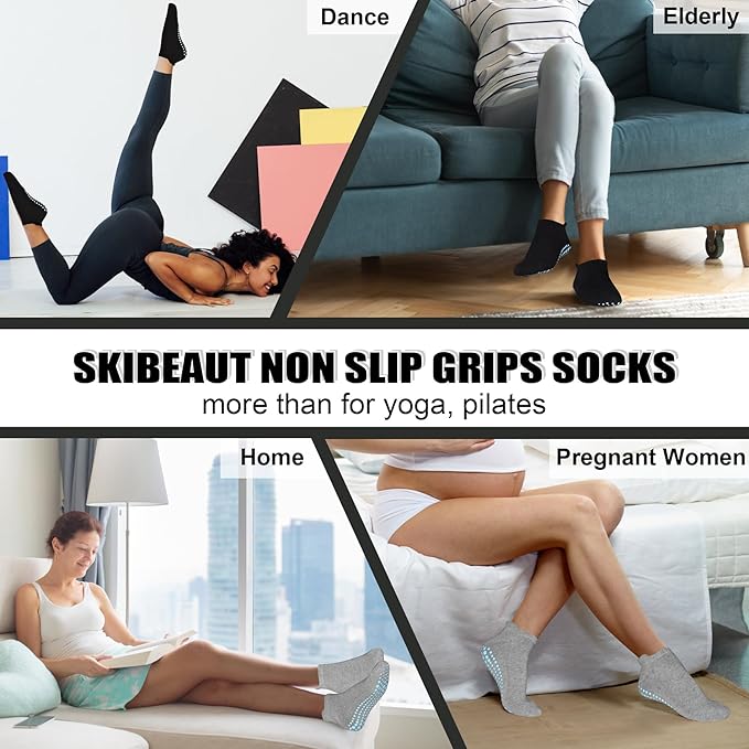 - ALL PURPOSES IN ONE: SkiBeaut grips socks are ideal for not only yoga, but also Pilates, Barre, Ballet dance, Bikram, Martial Arts, Trampoline,gym and other sports. Whether you are at home or exercising, we can bring you a full range of foot comfort and sense of security.It is widely used in studio, family, travel, hospital and other occasions