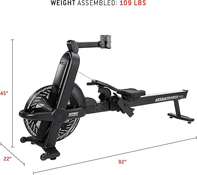 - POWERFUL PERFORMANCE - Get a total body workout with the Assault Rower Pro. Dual stage chain and belt drive system provide smooth rowing motion. Features steel foot plates, aluminum beam, and commercial-grade inspired seat for superior comfort and durability.