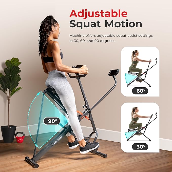 - 【MULTI-PURPOSE EXERCISE MACHINE】Designed with versatility in mind, this compact Row-N-Ride allows for multiple exercises, including squats, deadlifts, incline chest presses, and bent-over rows, giving you a complete full-body workout in one machine.