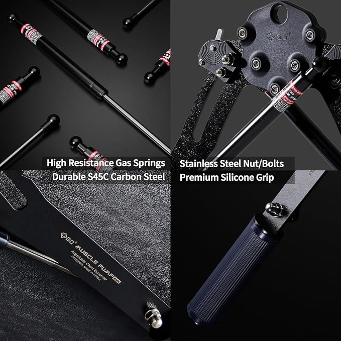 - [Smooth Contraction and Compression Resistance] GD MUSCLE PUMP features a unique gas spring technology in its chest expander. Unlike traditional coil springs, the gas spring provides a smooth and gradual increase in resistance, minimizing the risk of sudden tension release. You can feel consistent resistance throughout the entire range of motion, ensuring a safe and effective workout experience.