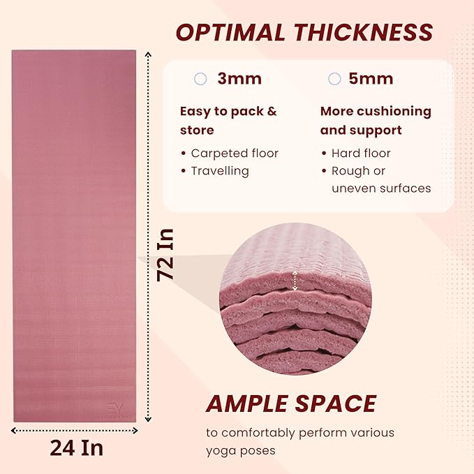 Everyday Yoga Deluxe Mat - 72"L x 24"W Non Slip Exercise Mat, Anti-Tear, 3-5mm Thickness for Yoga, Pilates & Floor Workouts