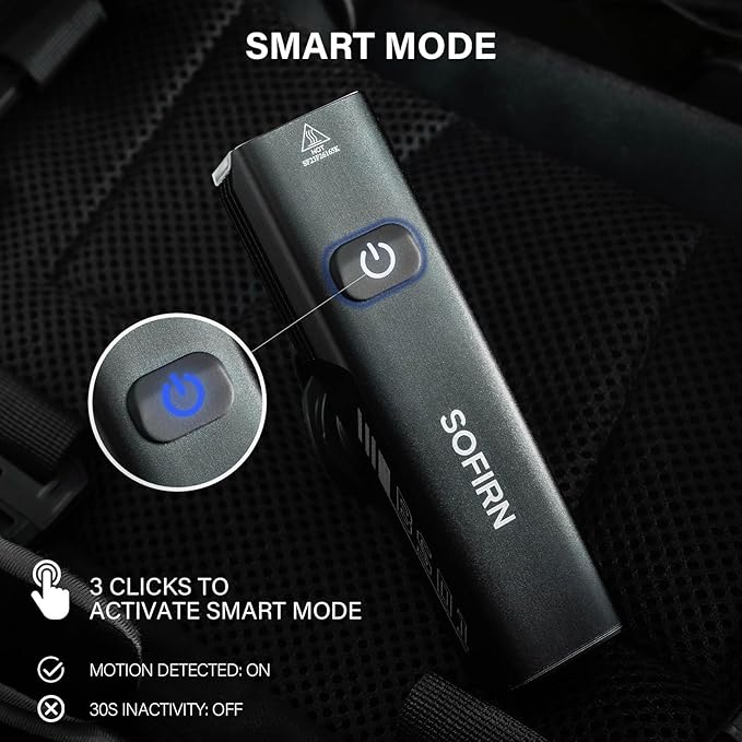 - Smart Mode: The bright bicycle lights incorporate an intelligent mode designed to conserve battery life and prevent overheating. In this mode, the headlights automatically switch off after 30 seconds of inactivity when the bike is stationary. When motion is detected, such as when you resume riding, the flashlight reactivates.This feature proves particularly handy during stops at traffic lights or breaks in your ride, eliminating the need for manual control each time.