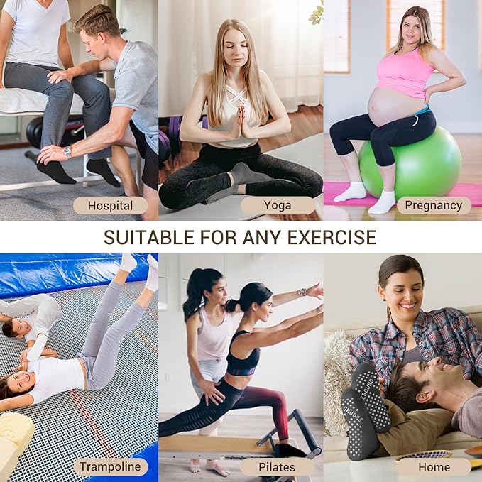 - NON-SLIP GRIPS DESIG: The grip socks with grips are comfy you won’t feel all the non skid dots as you walk. Non skid socks stay on easily are perfect for Yoga, Pilates, Hospital, Barre, Dance, Tower, Bar Classes,Trampoline, Fitness, Taekwondo, Workout, Housework, etc