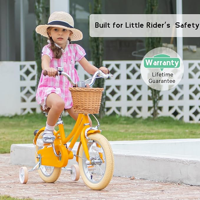 - 【Retro Style】The girls bike features a vintage-style metal frame and brown faux leather saddle, creating a unique and eye-catching look that will make your child a distinctive retro little rider.
