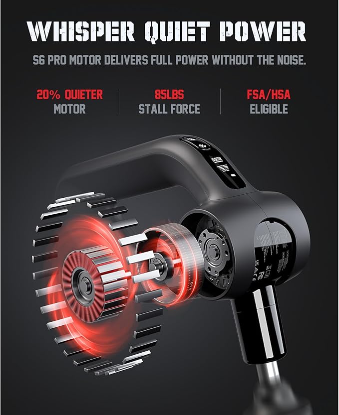 - Achieve deep muscle treatment with the S6 Pro's remarkable 16mm amplitude, setting an industry standard. This potent percussion massage gun boasts a staggering stall force of over 85lbs, ensuring powerful punches and the ability to be pressed firmly against the skin, effortlessly covering 80% of your body.