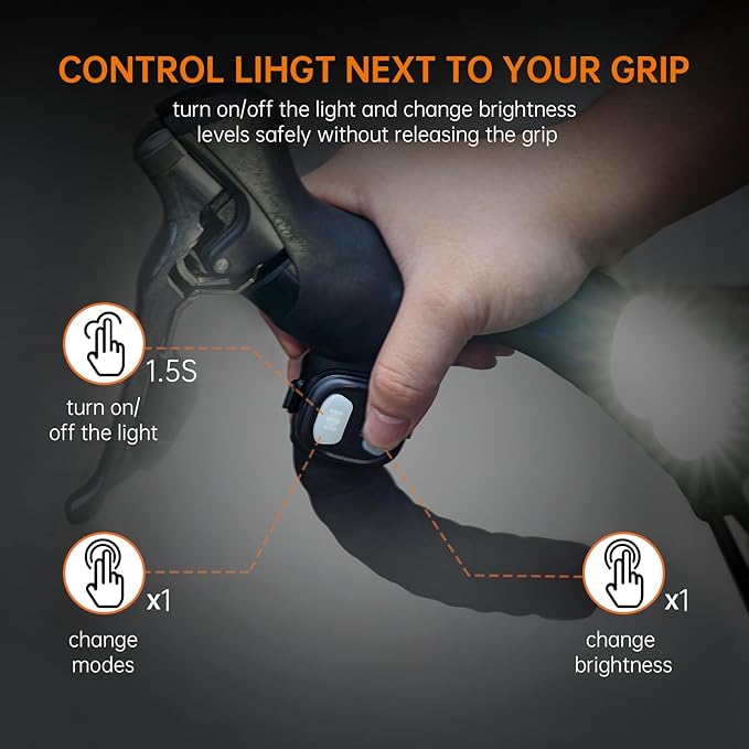- 【Wireless Remote Control】The rechargeable bike light allows you to turn on/ off the light, switch between modes, and change brightness levels safely without releasing the grip.