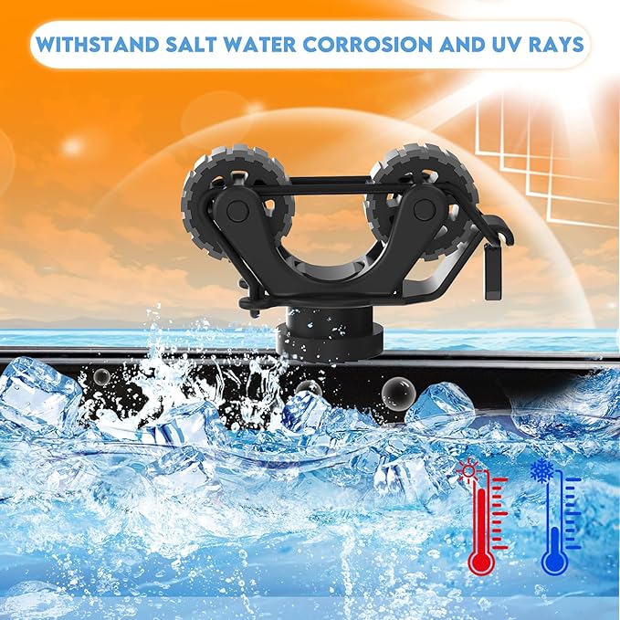 - Exclusive Adjustable Fit: Compatible with accessories from 0.8 inch to 1.3 inches in diameter, including fishing rods, nets, and anchor poles. Our specially designed rubber sleeve, developed in-house, fits over the rubber wheel to enhance grip on slimmer gear—delivering a more secure and versatile hold.