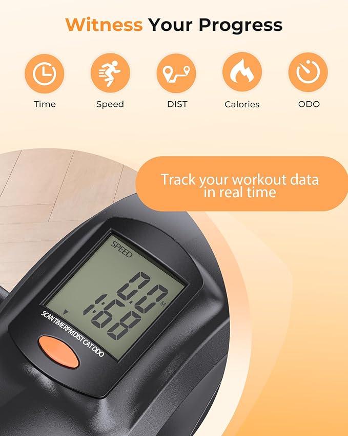 - DIGITAL MONITOR: screen tracking of workout data: heart rate, mileage, speed, calories. Under desk bike pedal exerciser can also be Bluetooth connected to KINOMAP and Zwift, so that you can easily grasp your body data and follow tutorials to exercise