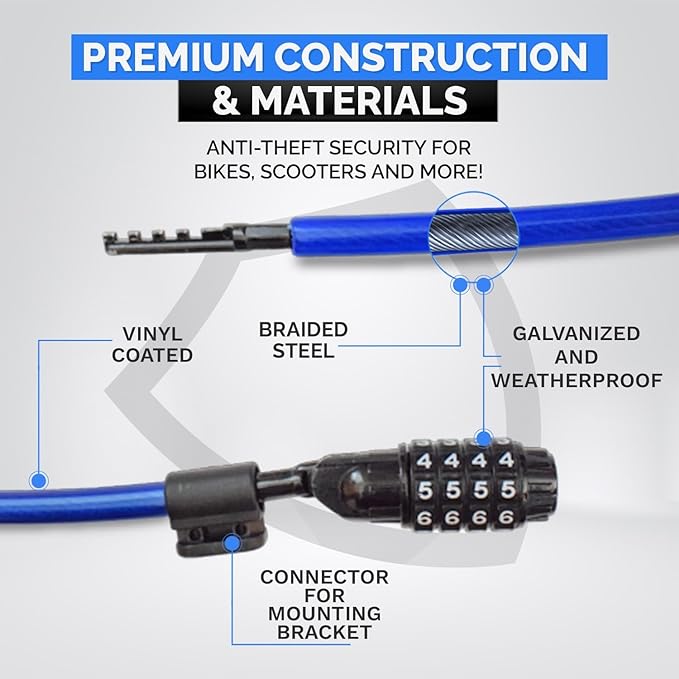 DockLocks Security Cable Lock Set (4' or 6') Coiled, Keyless Resettable Combination, Mounting Bracket, Portable and Compact for Bikes, Scooters 4ft
