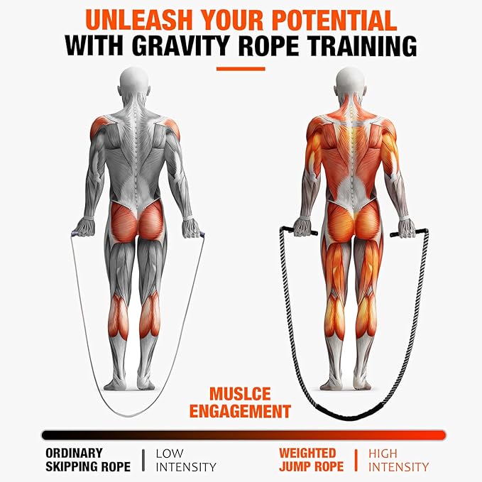 - Best Gift for Fitness:efficient and portable heavy jump rope, which is the perfect gift for family and friends who love exercise. With weighted jump rope workout you have the convenience of a mobile gym that can be used it anytime, anywhere. Embrace the fitness journey and achieve the body you desire.