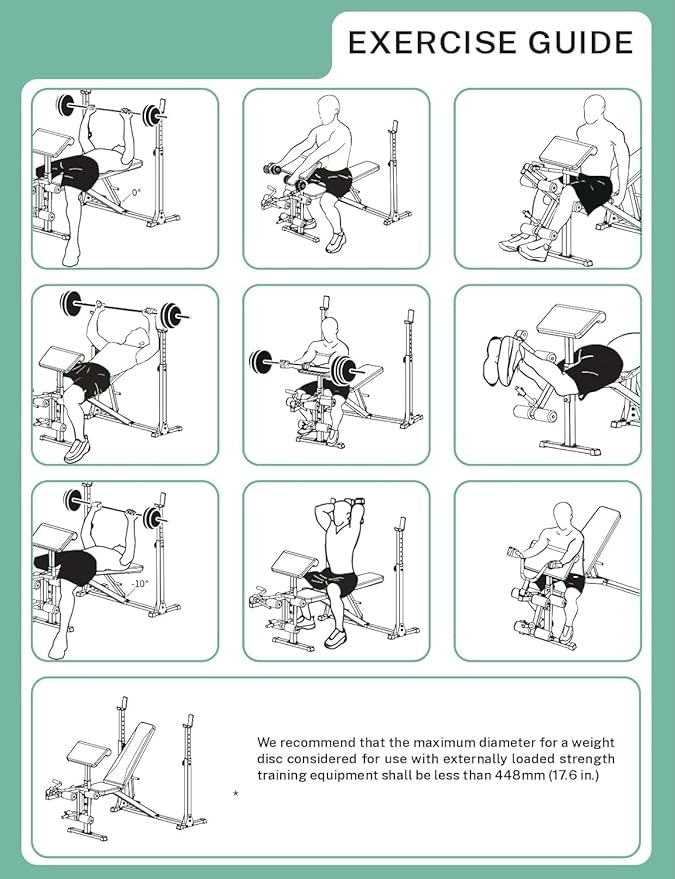 - 【Adjustable Weight Bench Set】This workout bench has 7 backrest positions, 8 squat rack positions and 3 preacher curl pad positions. The bench having a number of angles to make it incline, decline, or flat. There are so many adjustable and removable features it definitely makes working out easier and more enjoyable.