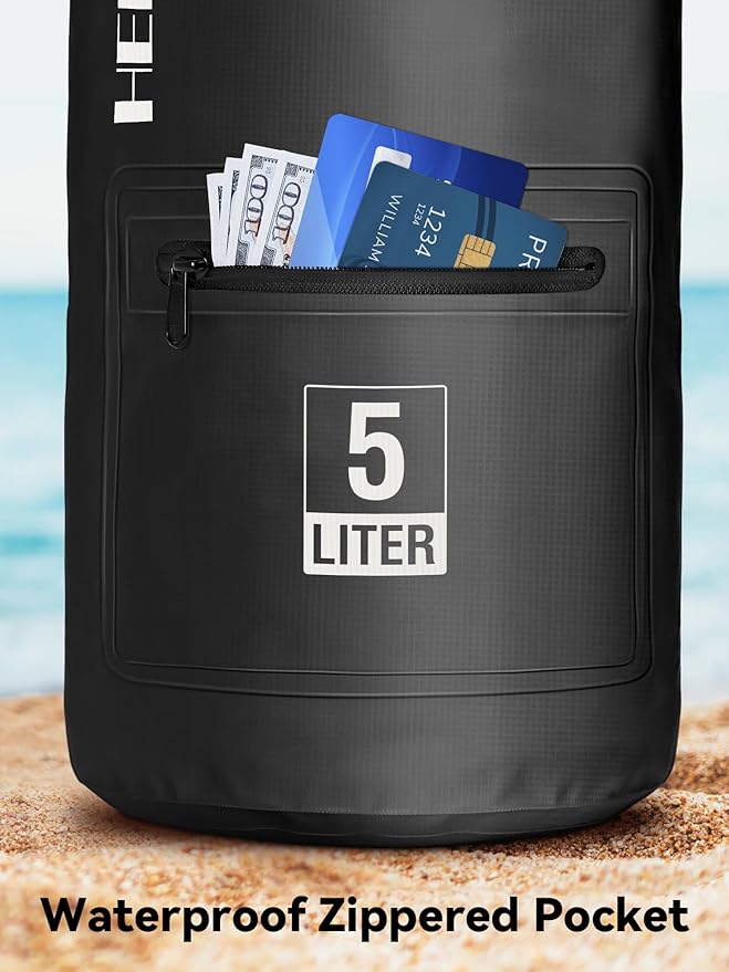 HEETA Waterproof Dry Bag with Front Zippered Pocket for Women Men, 5L/10L/20L/30L/40L Roll Top Lightweight Dry Storage Bag Backpack for Travel, Kayaking, Boating, Rafting, Camping, Hiking & Beach