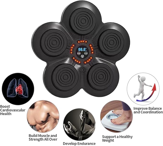 - ROBUST and LONG-LASTING: The overall use of ABS material, the cushioning is created from PU leather and foam, providing an elegant surface that's easy to clean and practical. Compared with the ordinary panel boxer, this intelligent music boxing target stronger impact resistance, upgraded to a large hitting module that can withstand up to 440lb/200kg of blows and is not easily broken