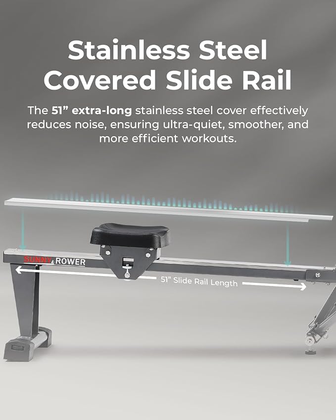 - 【DURABLE STAINLESS STEEL RAIL COVER】Experience an ultra long 51.3-inch rail with a stainless steel cover for smoother, quieter operation and enhanced workouts. Elevate your exercise machine's performance and gains with this innovative rail design.