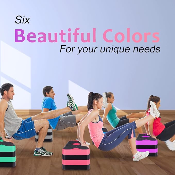 - 【Anti-slip & No Scratches】Textured surface is non-slip and shock absorbing, meaning you can have stability with every single set of steps. Workout stepper comes with nonskid rubber feet on each riser, prevent you from sliding/slipping, provide stable performance and leave no scratches.