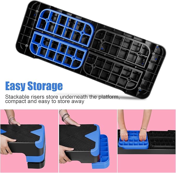 - 【Anti-slip & No Scratches】Textured surface is non-slip and shock absorbing, meaning you can have stability with every single set of steps. Workout stepper comes with nonskid rubber feet on each riser, prevent you from sliding/slipping, provide stable performance and leave no scratches.