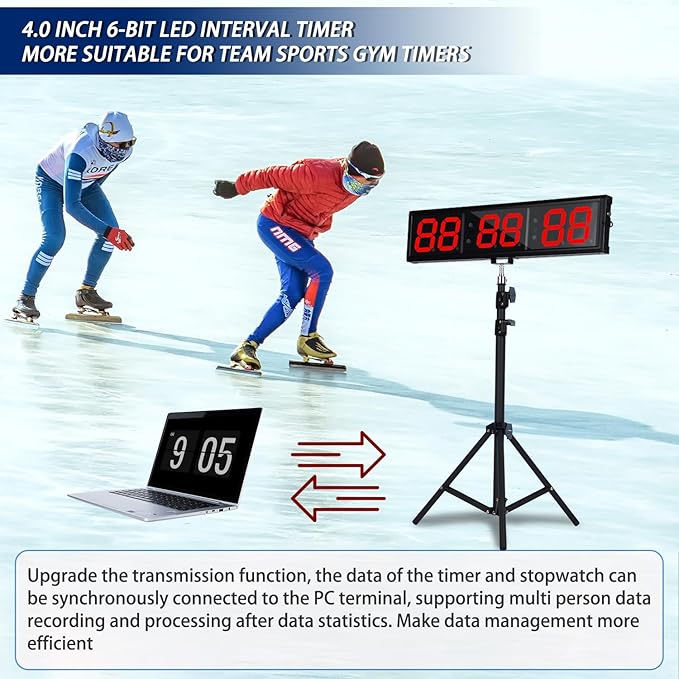 - 【4.0 inch gym timer】: Large LED digital timer that maintains the original 12 hour and 24 hour real-time clock, countdown, timing, stopwatch, custom interval mode, and comes with a stopwatch switch button. The data from timers and stopwatches can be synchronized and connected to PC terminals, and processed after data statistics to improve data statistics efficiency. In addition to daily fitness timers, they are more suitable for statistics of team competition results, and are very suitable for environments that require independent timers such as MMA, medium/large competitions, sports venues, schools, etc