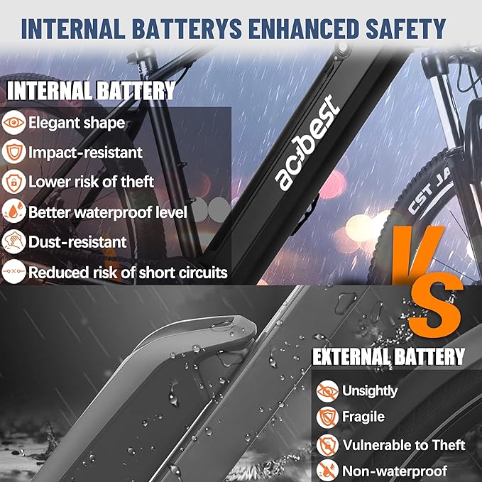 - 36V 13AH Removable Built-in Battery - The UL2849-certificated battery is easy to remove for charging and has a waterproof, shockproof and anti-theft design, which is safer and lasts much longer. The battery only takes 4-6 hours to fully charge, giving you a range of up to 35 miles (throttle)/50 miles (PAS) on a single charge.