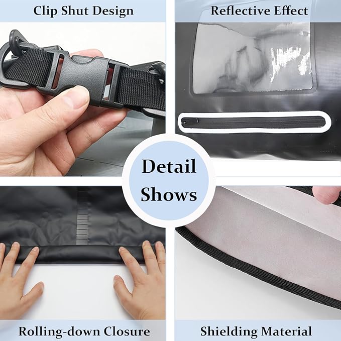 - 💯【Waterproof Faraday Bag with Adjustable Strap】The exterior of faraday dry bag is made of high-quality PVC waterproof material, making it ideal for beach, kayaking, boating, swimming, and camping. Your items in the bag are highly protected from getting wet in the rain by our well sealed and waterproof faraday cage.Adjustable length: 21.6"~42.1", Our faraday bags can be used not only as a handbag but also as a crossbody bag.