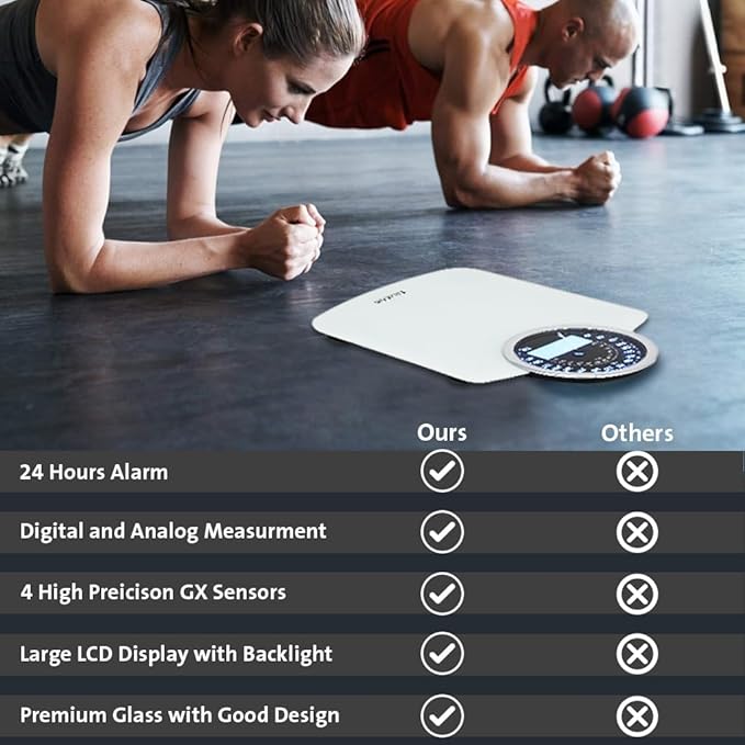 EILISON Highly Advance 2-in-1 Digital & Analog Weighing Scale for Body Weight-400lbs, 4 High Precison GX Sensor Accurate, Thick Tempered Glass, Extra Large Display (White)