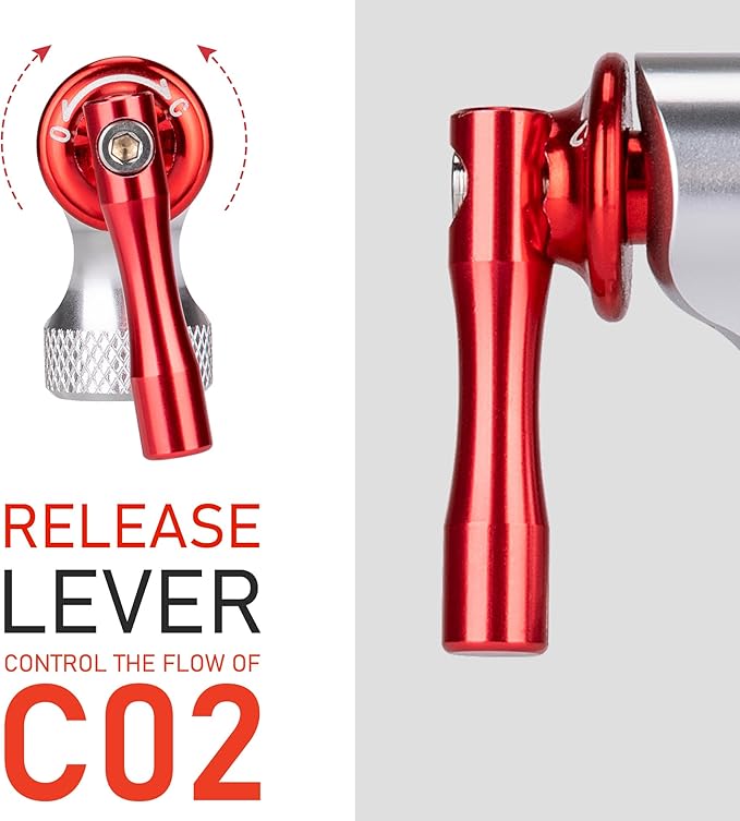 - Get Back Riding Quickly–Whether you're on the road or trail, repairing a flat, or preparing for your next ride - the Bike CO2 inflator kit offers the most reliable way to rapidly inflate your bike tires anywhere, anytime,Simply connect any threaded 16g / 25g CO2 cartridge to the inflator, cover CO2 cartridge with the included foam protective pad, & rapidly air up your tires by pressing the inflator nozzle directly onto the tire valve stem,Inflate your tires in seconds.
