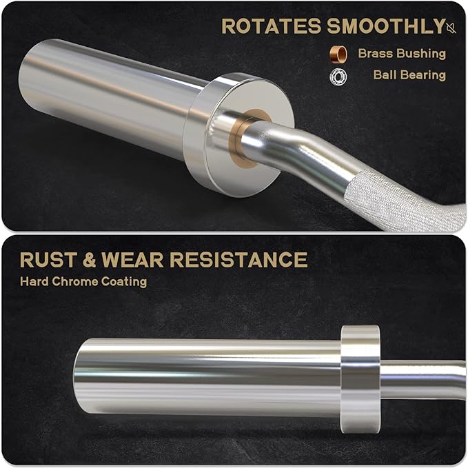 - Smooth Rotation & Secure Loading: Equipped with rotating sleeves for fluid movement and secure Olympic plate retention. You have three strength bar to choice: sliver, half black and full black.