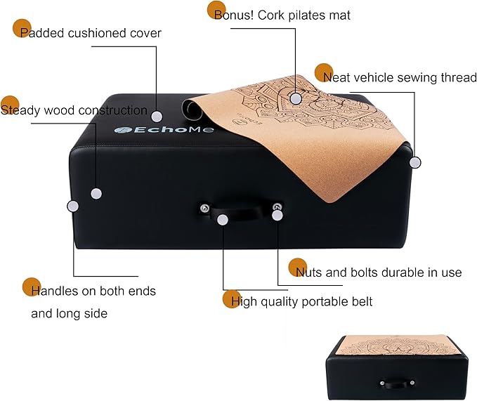 Pilates Sitting Box for Pilates Reformer by EchoMe, Box Pilates Reformer for Home Gym,Professional Studio Use,and Strength Exercises,Pilates Reformer Accessory for Pilates Exercises