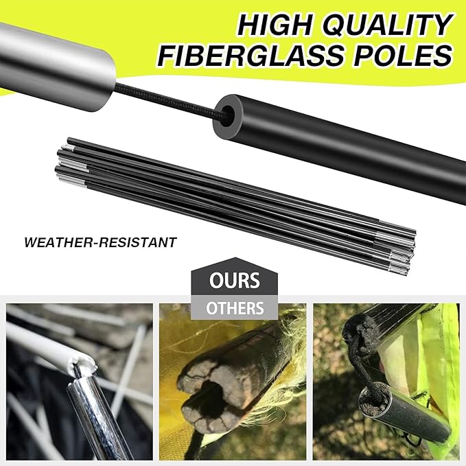 - HIGH QUALITY IN MATERIAL – These pop up soccer goals are made of thickened polyester material for good strength and flexibility and 420D oxford fabric reinforced stitching to prevent tearing. The reinforced fiberglass poles of the frame are more stable, so it is weather resistant and L-shaped connector is also fiberglass poles, it is strong and smooth, so it won’t hurt your kids during practice