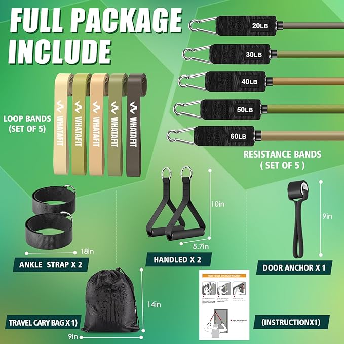 - SUITABLE FOR DAILY USE: Each exercise bands set is carefully constructed to resist snapping and breaking, which are able to withstand intense daily exercise sessions.Now enjoy the exercise with WHATAFIT resistance bands set