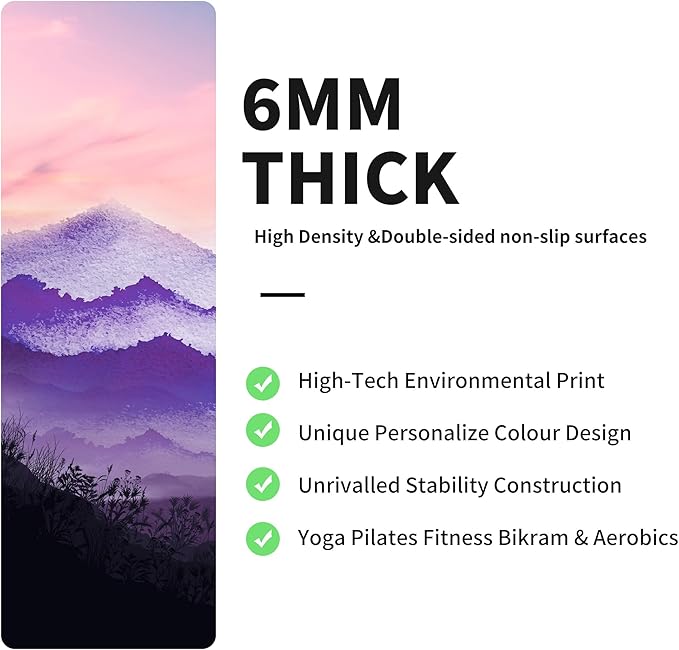- ▨ TPE MATERIAL YOGA MAT: Premium TPE is the latest upgrade and improvement of traditional production technology. Comparing with traditional yoga mats made with non-green PVC, NBR and EVA material, it is softer, lighter and has better resilience. The TPE Material yoga mats area durable and supportive base, double anti tear layer.