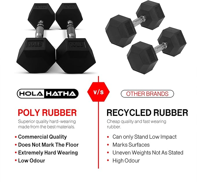 - Built for Strength and Comfort: Each hexagonal dumbbell is crafted from robust poly rubber to ensure longevity and reliable performance.
